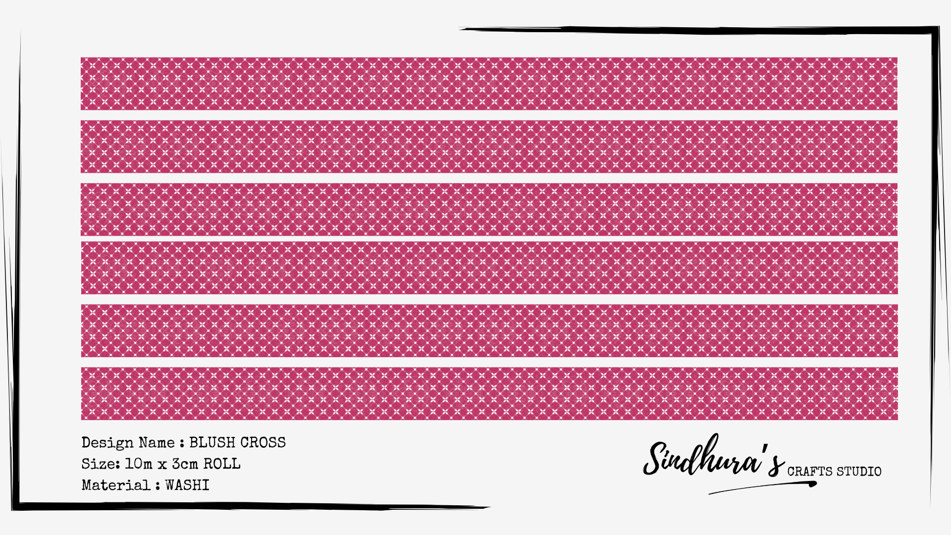 Blush Cross is a warm rose-pink washi tape with a tiny geometric cross pattern, soft, tidy, and made for effortless layering. It gives your pages a gentle lift without overpowering the rest of your spread, making it a perfect “background builder” for journaling and paper crafting.