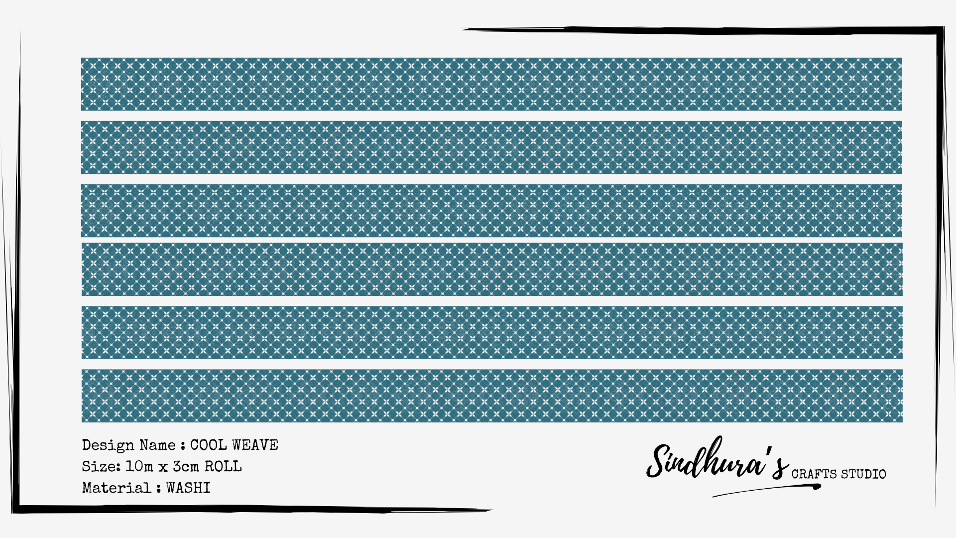Cool Weave is a deep teal-blue washi tape with a tiny geometric repeat, clean, crisp, and incredibly versatile. It’s made for quiet layering: the kind of background that adds structure and contrast while keeping your page calm and cohesive.