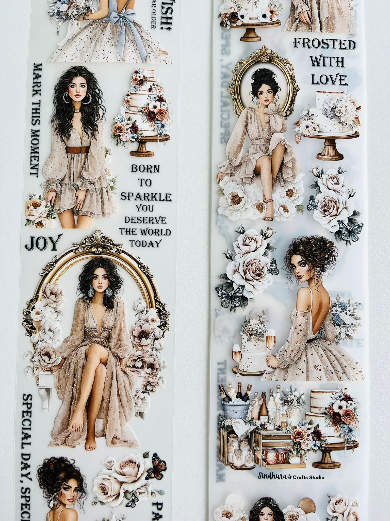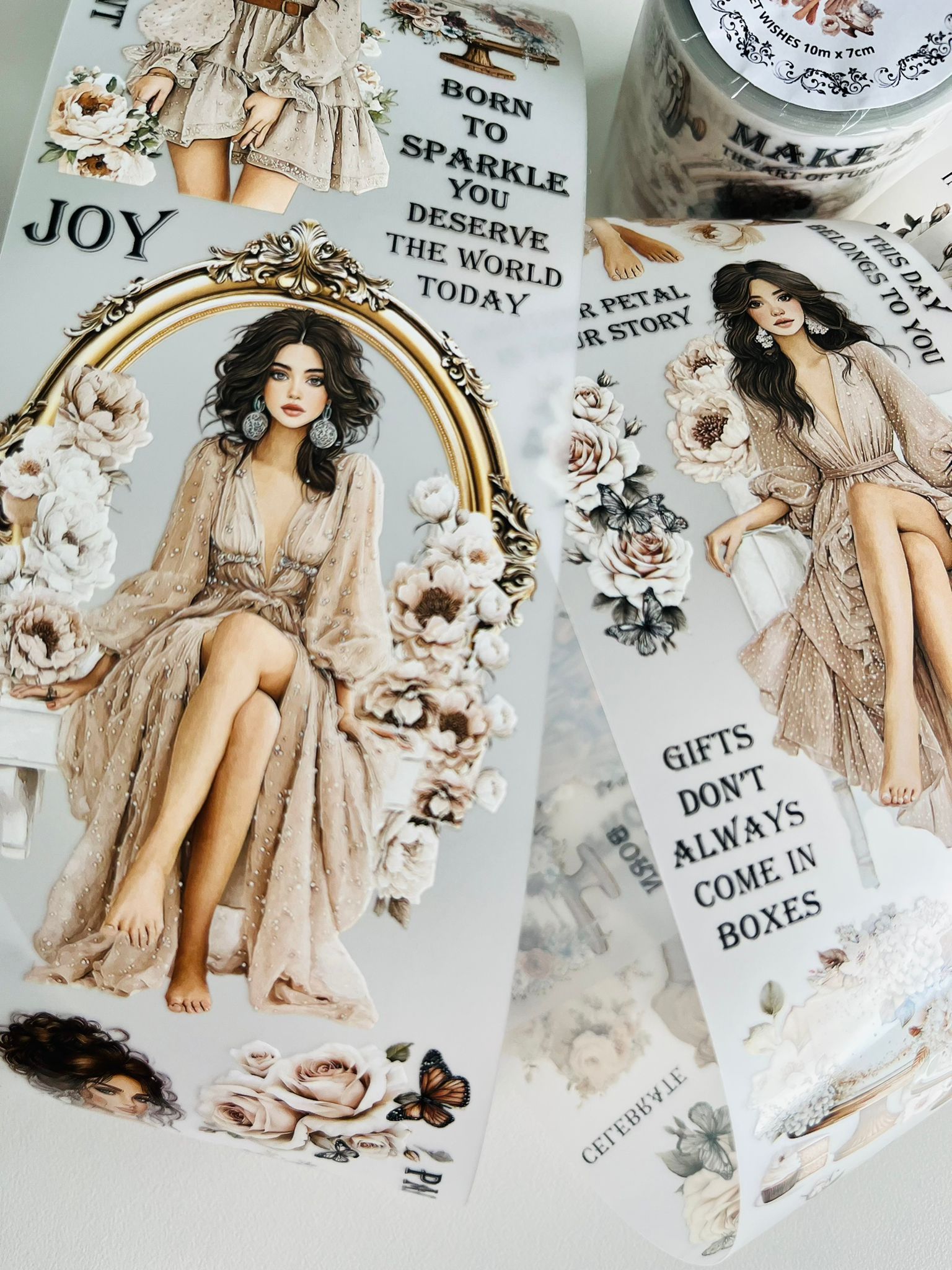 Elevate your creative projects with our premium PET tape, crafted to perfection for scrapbooking, journaling, and DIY art endeavors. Boasting a refined matte finish, this tape is the ideal accent for intricate collages, detailed layouts, and layered decorative elements. The 100cm loop offers practical, segmented design opportunities, providing precision and flexibility for your creative needs.